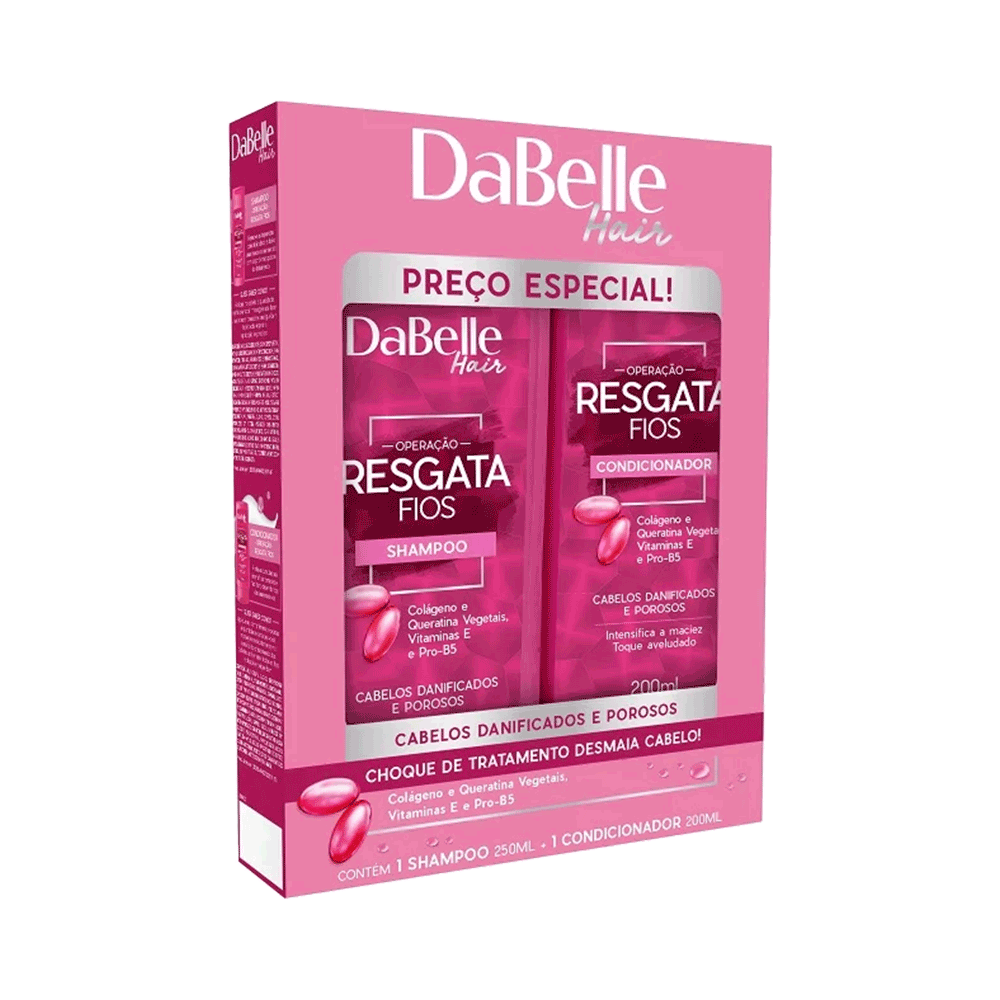 Kit Dabelle Resgata Fios Shampoo + Condicionador fortalece, recupera cabelos danificados e devolve maciez e brilho aos fios.